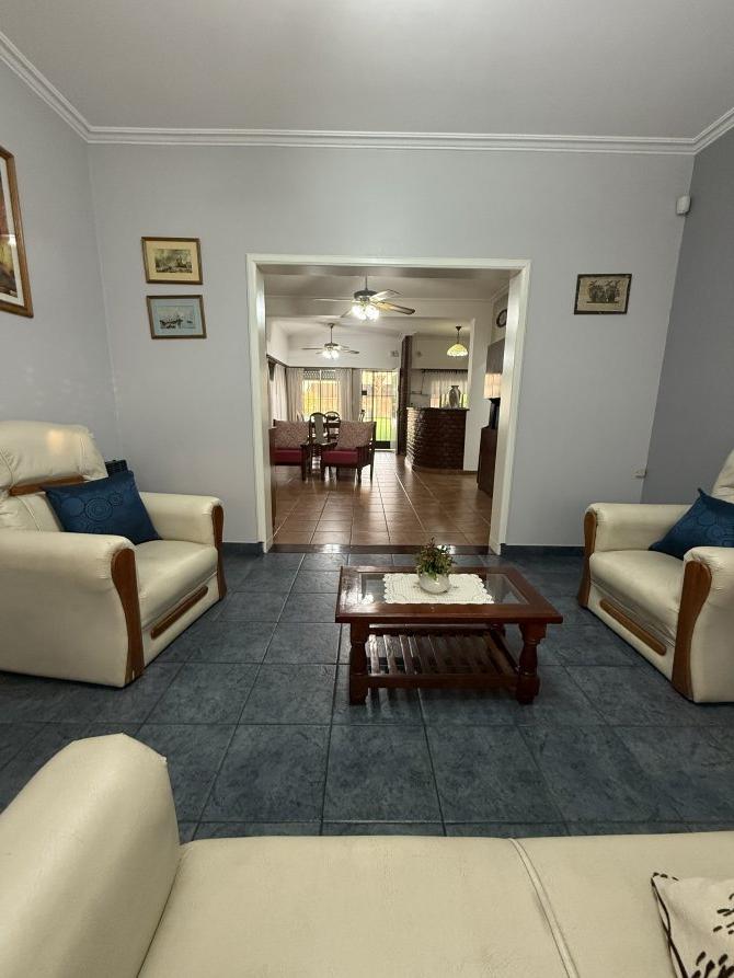 Excelente propiedad sobre lote de terreno de 13 metros de frente por 50 metros de fondo. Medidas aproximadas. Amplio living comedor, cocina con barra. Cuenta con tres habitaciones muy cómodas con placard empotrado. Garage cubierto y semicubierto. Piscina rodeada con piso antideslizante. Galería semicubierta con parrilla. Amplio parque. Ubicada a pocas cuadras de la estación de Rafael calzada, cuenta con todos los servicios. Digna de ver!!!
